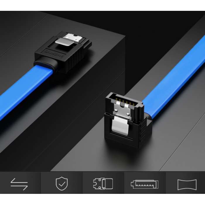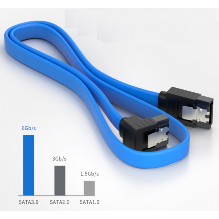Кабель SATA 3.0 для подключения интерфейсных устройств Sata. Имеет два канала передачи данных, от контроллера к устройству и от устройства к контроллеру. Для передачи сигнала используется технология LVDS, провода каждой пары являются экранированными витыми парами. SATA (англ. Serial ATA) — последовательный интерфейс обмена данными с накопителями информации. SATA 3.0 является развитием параллельного интерфейса ATA (IDE), который после появления SATA был переименован в PATA (Parallel ATA). SATA использует 7-контактный разъём вместо 40-контактного разъёма у PATA. SATA-кабель имеет меньшую площадь, за счёт чего уменьшается сопротивление воздуху, обдувающему комплектующие компьютера, упрощается разводка проводов внутри системного блока. SATA-кабель за счёт своей формы более устойчив к многократному подключению.