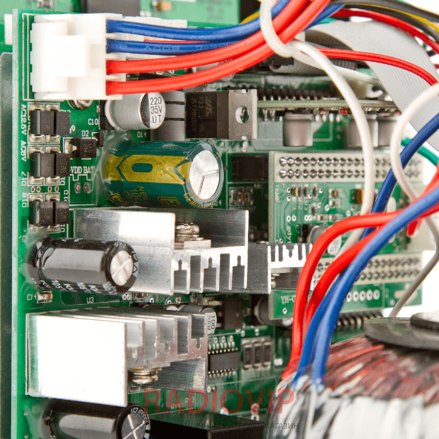 ИБП Logicpower LPY- B - PSW-800VA+ обладает встроенным зарядным приспособлением, ток заряда 5-15А. При работе от сети ИБП действует как стабилизатор в диапазоне 145-270В, а при надобности под заряжает аккумулятор.