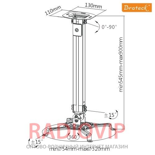 Кронштейн для видеопроектора Brateck PRB-18M предназначен для крепления видеопроектора на потолок в удобном месте. На кронштейн можно повесить видеопроектор с возможностью наклона до 15° и вращением на 360°. Максимальный вес проектора, который выдержит кронштейн, составляет с максимальной нагрузкой 13.5 кг. Купить кронштейн для видеопроектора Brateck PRB-18M по доступной цене можно в нашем интернет магазине с доставкой во все уголки Украине с различными способами оплаты. Если вам тяжело остановить выбор или сделать заказ, то свяжитесь с нами и наши консультанты помогут вам с выбором.
