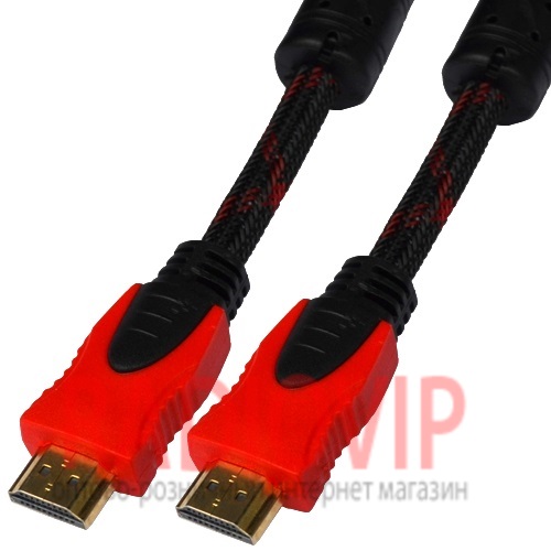 Шнур HDMI (шт.- шт.) Vers.-1,4, gold, фильтр+ сетка, 2м, чёрно-красный