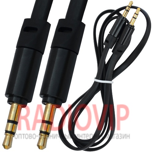 Шнур шт.3,5стерео- шт.3,5стерео, плоский, gold, 1м., чёрный