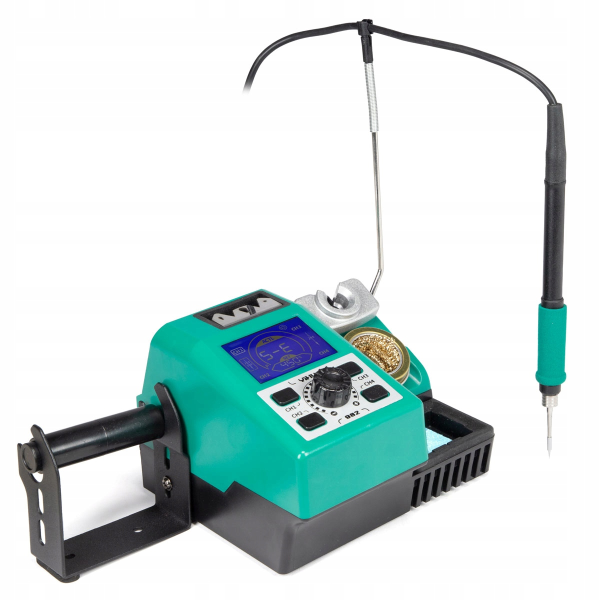 Данная модель снабжена ручной регулировкой температуры нагрева жала в широком диапазоне от +90°C до +450°C. Оснащена LCD дисплеем, который встроен в блок управления.