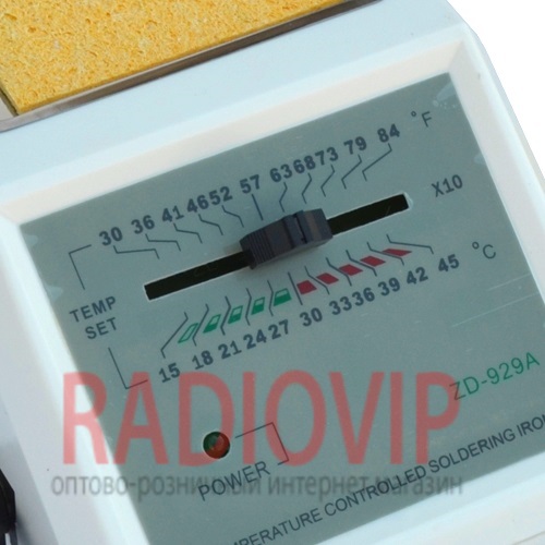 Паяльная станция ZD-929A обладает трансформатором, благодаря которому паяльник работает от напряжения 24 Вольта. Также данная паяльная станция обладает современной антистатической защитой. Электронное управление позволяет минимализировать погрешности в температуре жала, а светодиодные индикаторы облегчают управление.
